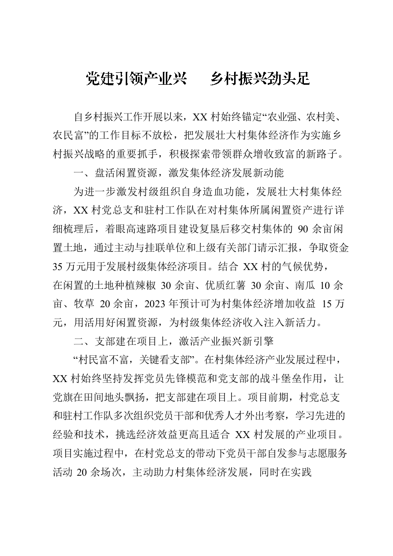 党建引领产业兴 乡村振兴劲头足