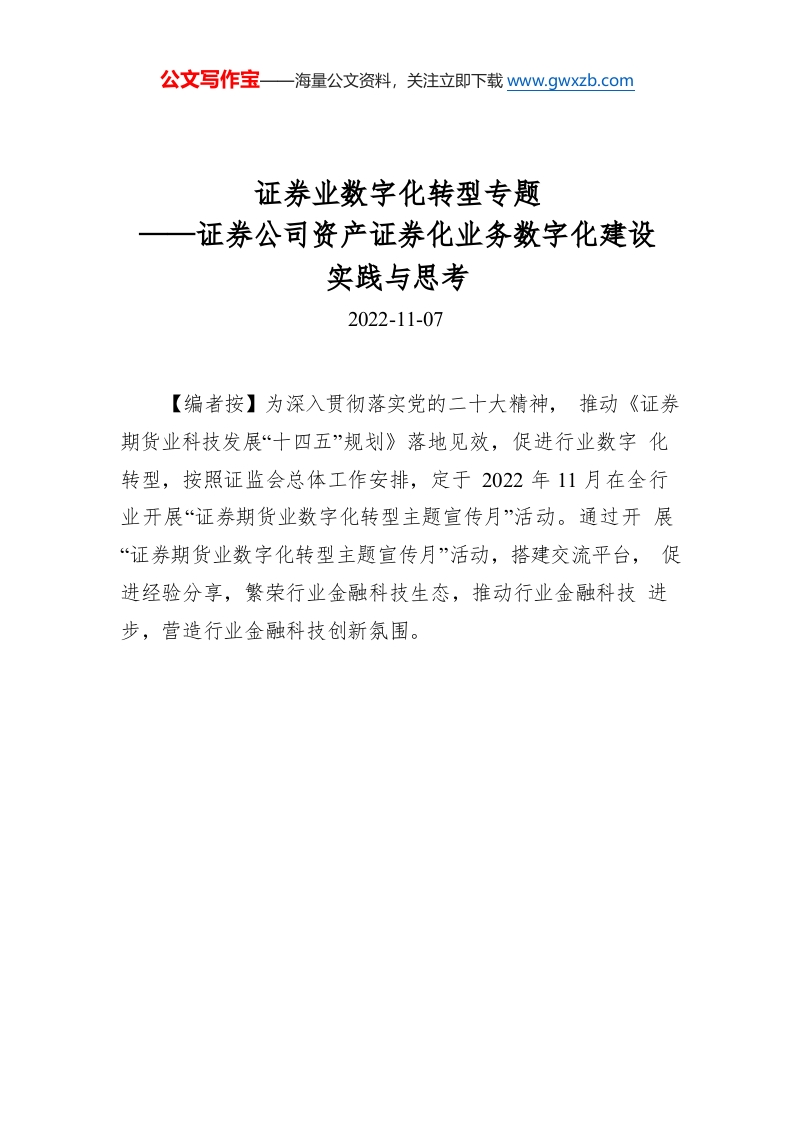 / 证券业数字化转型专题