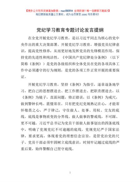 / 党纪学习教育专题讨论发言提纲1
