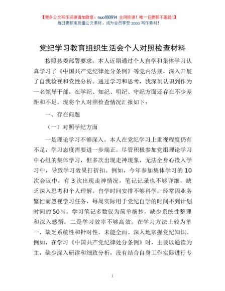 / 党纪学习教育组织生活会个人对照检查材料1