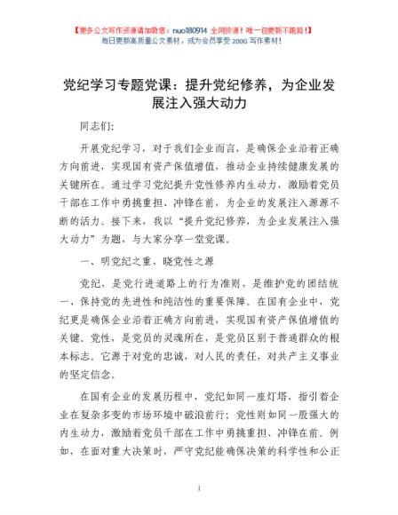 / 党纪学习专题党课:提升党纪修养,为企业发展注入强大动力1