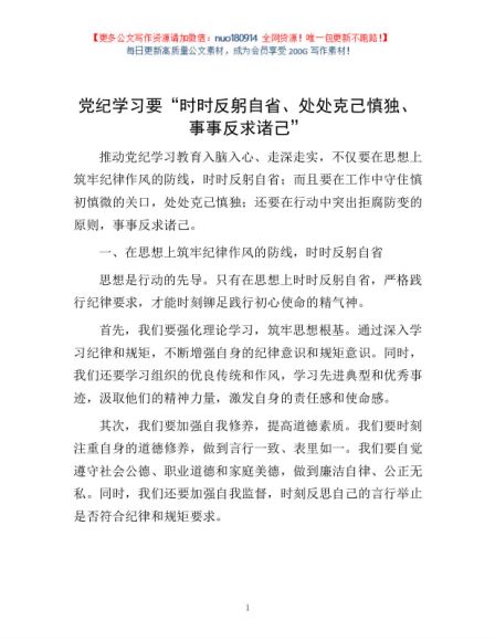 党纪学习要“时时反躬自省、处处克己慎独、事事反求诸己”1