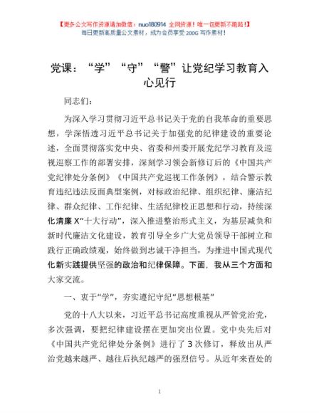 党课:“学”“守”“警”让党纪学习教育入心见行1