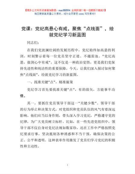 / 党课:党纪高悬心有戒,聚焦“点线面”,绘就党纪学习新蓝图1