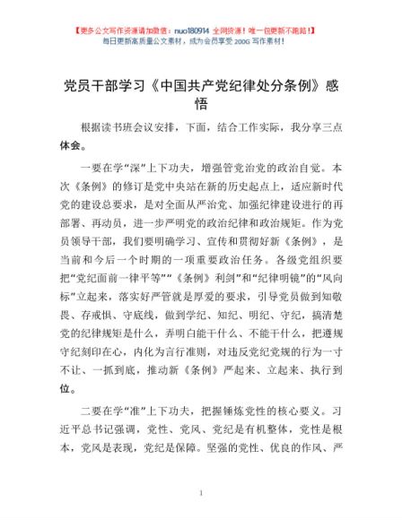 / 党员干部学习《中国共产党纪律处分条例》感悟1