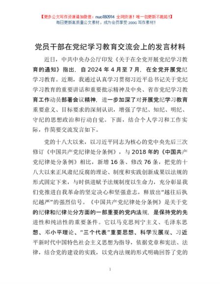 / 党员干部在党纪学习教育交流会上的发言材料1