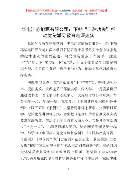 / 华电江苏能源有限公司:下好“三种功夫”推动党纪学习教育走深走实1