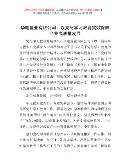 华电置业有限公司:以党纪学习教育实效保障企业高质量发展1