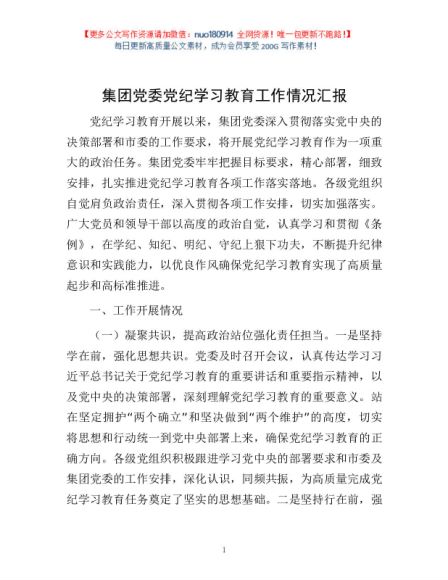 / 集团党委党纪学习教育工作情况汇报1