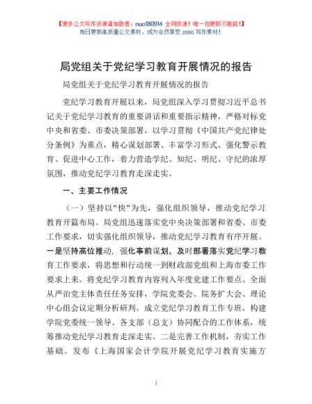 / 局党组关于党纪学习教育开展情况的报告1