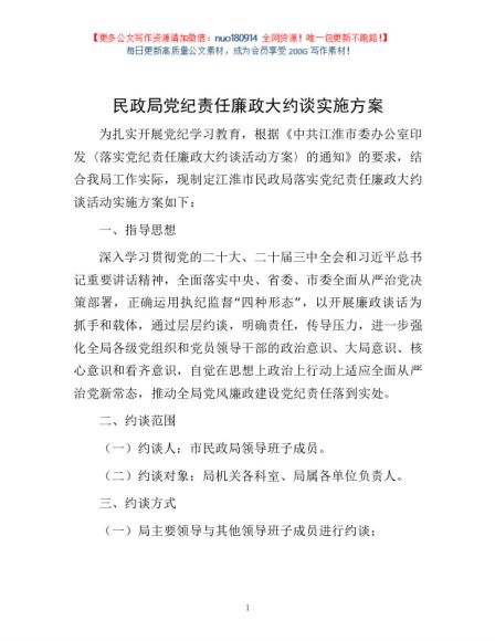 / 民政局党纪责任廉政大约谈实施方案1