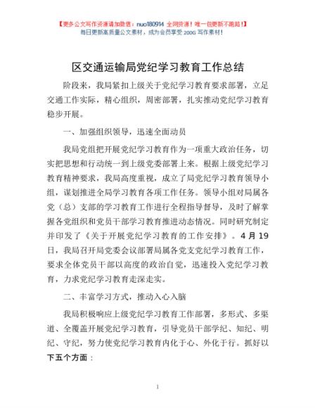 / 区交通运输局党纪学习教育工作总结1