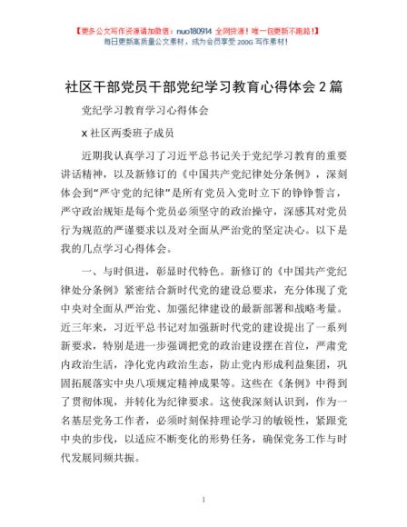 / 社区干部党员干部党纪学习教育心得体会2篇1