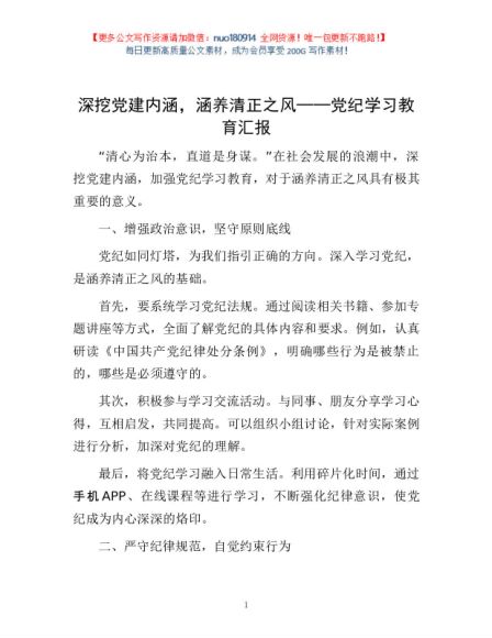 / 深挖党建内涵,涵养清正之风——党纪学习教育汇报1