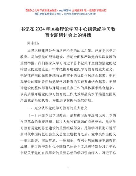 / 书记在2024年区委理论学习中心组党纪学习教育专题研讨会上的讲话1