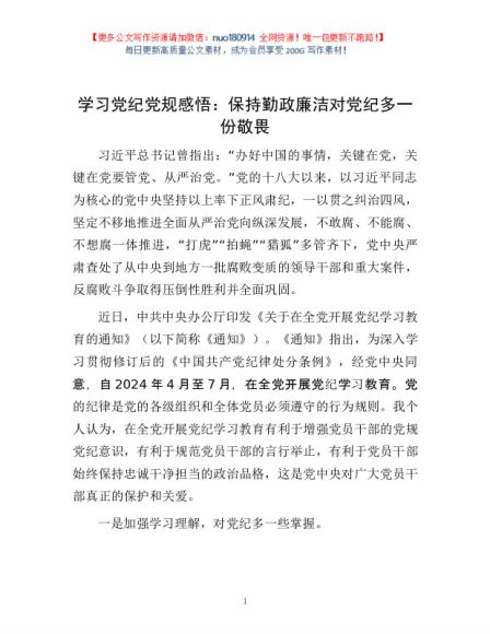 / 学习党纪党规感悟:保持勤政廉洁 对党纪多一份敬畏1
