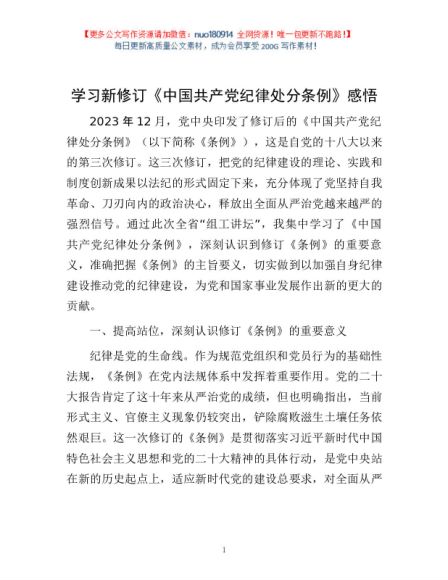 / 学习新修订《中国共产党纪律处分条例》感悟1