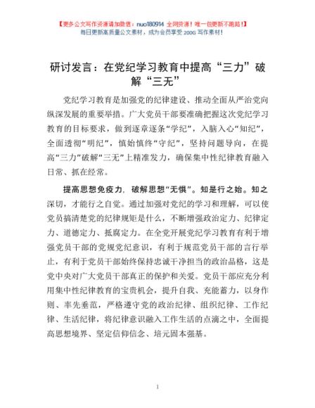 研讨发言:在党纪学习教育中提高“三力”破解“三无”1