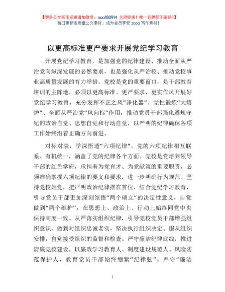 以更高标准更严要求开展党纪学习教育1
