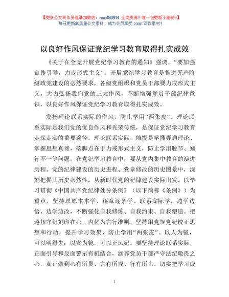 以良好作风保证党纪学习教育取得扎实成效1