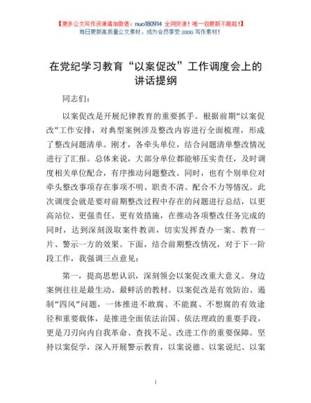 / 在党纪学习教育“以案促改”工作调度会上的讲话提纲1