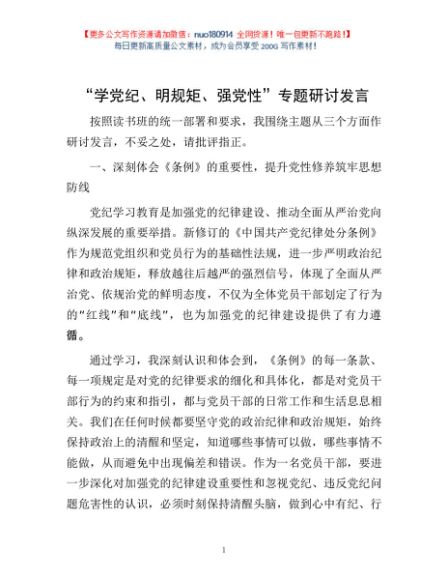 / “学党纪、明规矩、强党性”专题研讨发言1
