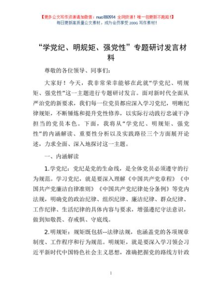 / “学党纪、明规矩、强党性”专题研讨发言材料1