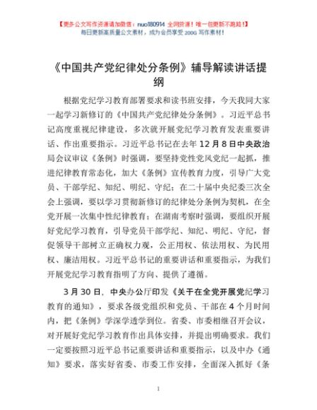 / 《中国共产党纪律处分条例》辅导解读讲话提纲1