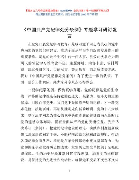 / 《中国共产党纪律处分条例》专题学习研讨发言1