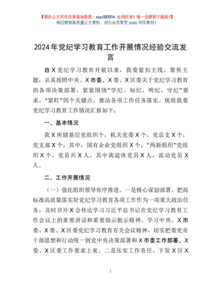 / 2024年党纪学习教育工作开展情况经验交流发言1