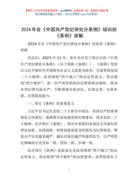 / 2024年在《中国共产党纪律处分条例》培训班《条例》讲解1