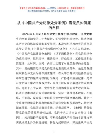 / 从《中国共产党纪律处分条例》看党员如何廉洁自律1