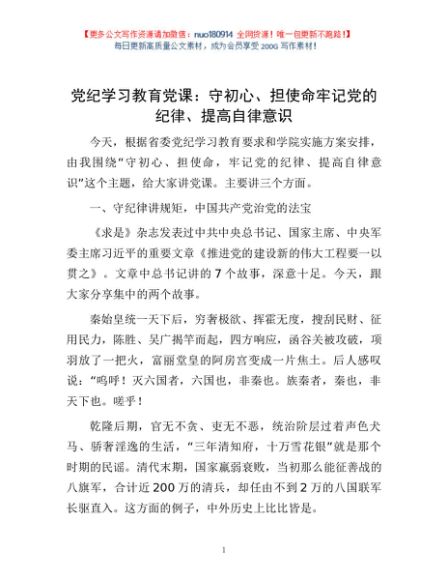 / 党纪学习教育党课:守初心、担使命 牢记党的纪律、提高自律意识1