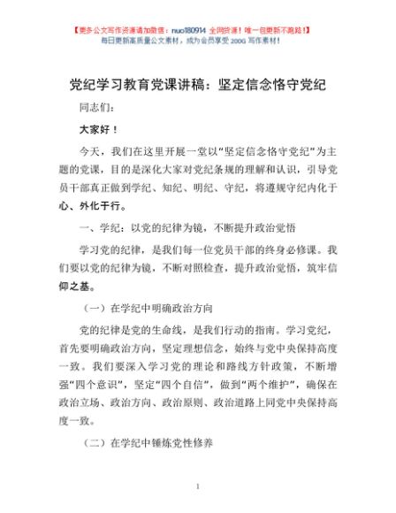 党纪学习教育党课讲稿:坚定信念 恪守党纪1
