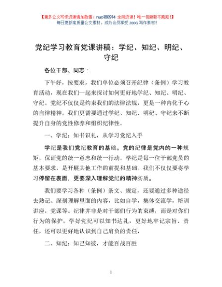 / 党纪学习教育党课讲稿:学纪、知纪、明纪、守纪1