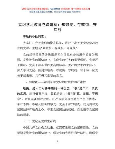 党纪学习教育党课讲稿:知敬畏、存戒惧、守底线1