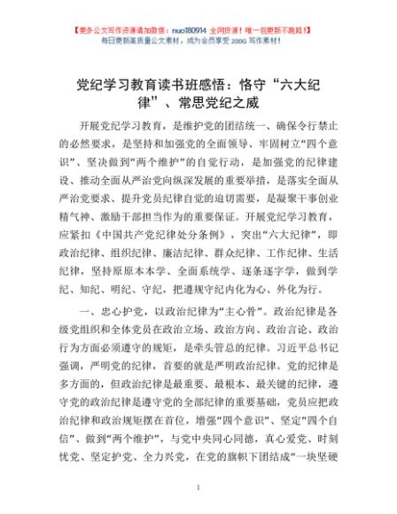 党纪学习教育读书班感悟:恪守“六大纪律”、常思党纪之威1