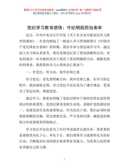 党纪学习教育感悟:学纪、知纪、明纪、守纪1
