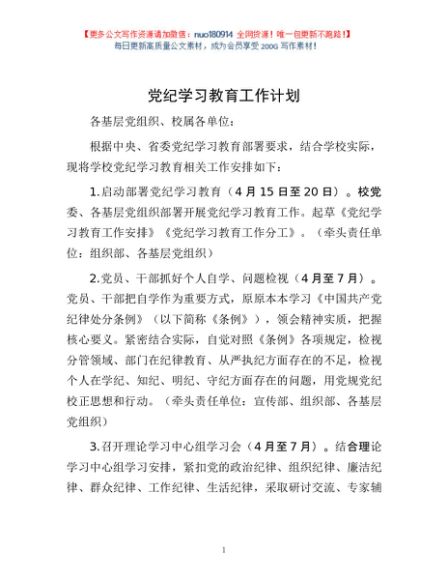/ 党纪学习教育工作计划1