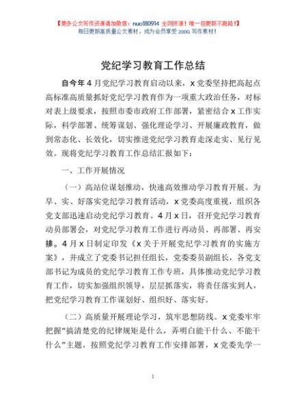 / 党纪学习教育工作总结1