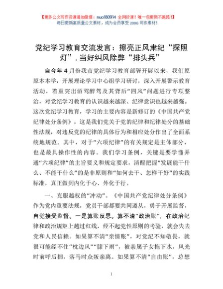 党纪学习教育交流发言:擦亮正风肃纪“探照灯”,当好纠风除弊“排头兵”1
