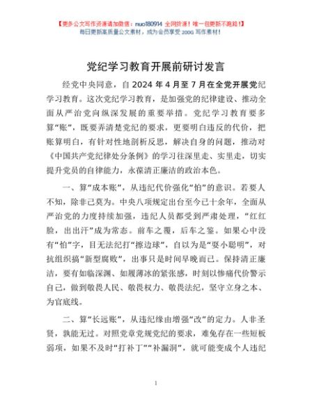 / 党纪学习教育开展前研讨发言1
