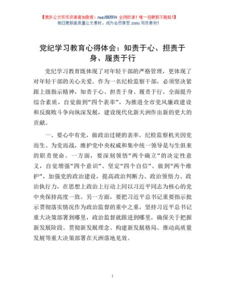 党纪学习教育心得体会:知责于心、担责于身、履责于行1