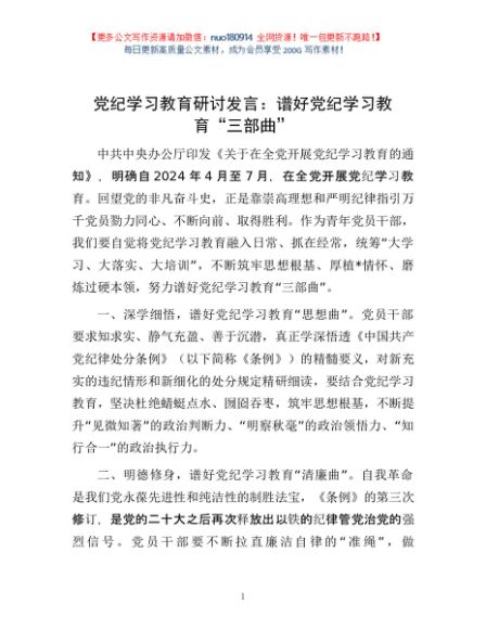 党纪学习教育研讨发言:谱好党纪学习教育“三部曲”1
