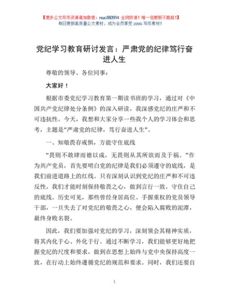 党纪学习教育研讨发言:严肃党的纪律 笃行奋进人生1