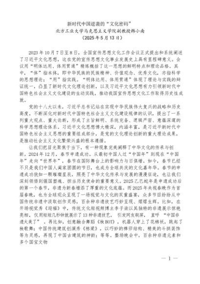 / “党课荟”系列第349期韩小南:新时代中国逆袭的“文化密码”
