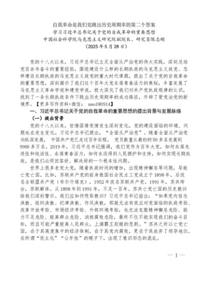 “党课荟”系列第354期陈志刚:自我革命是我们党跳出历史周期率的第二个答案——学习习近平总书记关于党的自我革命的重要思想