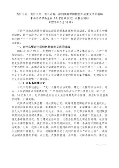 / “党课荟”系列第359期金国坤:为什么走、走什么路、怎么走好:深刻理解中国特色社会主义法治道路
