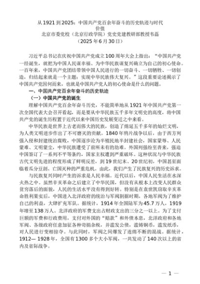 / “党课荟”系列第363期韦磊: 从1921到2025:中国共产党百余年奋斗的历史轨迹与时代价值