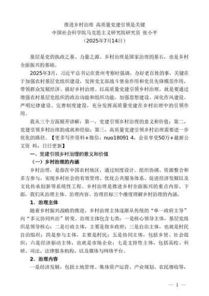 / “党课荟”系列第366期张小平:推进乡村治理 高质量党建引领是关键